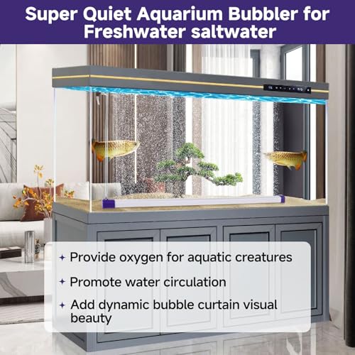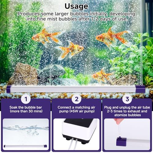 Multifunktional: Sauerstoffversorgung, Wasserzirkulation, Dekoration 3-in-1-Funktion. Der lange Aquarium-Luftblasenstreifen verteilt den Sauerstoff gleichmäßig, um einen hohen gelösten Sauerstoffgehalt zu bilden, um eine bessere Wasserzirkulation für Fische, Pflanzen und Korallen zu fördern. Die Blasen, die von der Blasenleiste erzeugt werden, können eine schöne Blasenwand oder vorhang bilden und auch eine dynamische visuelle ästhetische Vision schaffen.