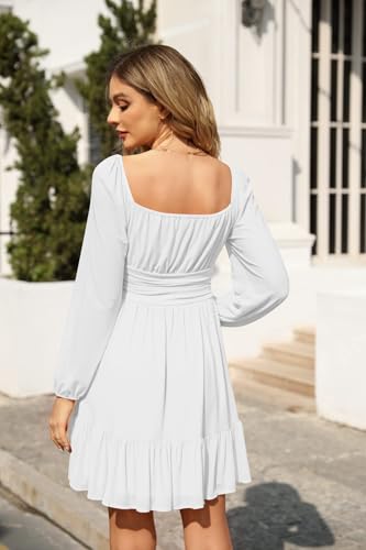 Imily Bela Damen Kleider Square Neck Partykleid Mesh Minikleid High Waist Falten Langarmkleid Hochzeitsgast mit Rüschen