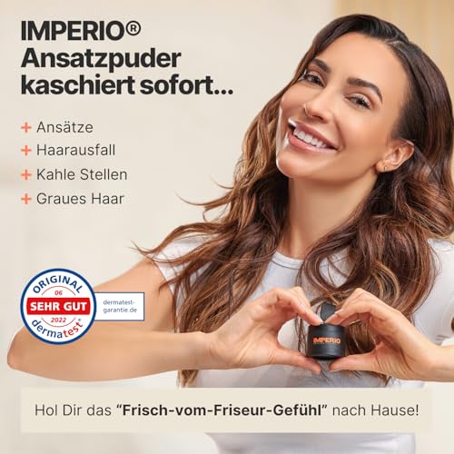 SOFORT EFFEKT | Mit dem Ansatzpuder von IMPERIO kaschierst Du in Sekunden perfekt: lichte & kahle Stellen, Schläfen, dünne Haare, Haaransatz, Bart und sogar Geheimratsecken