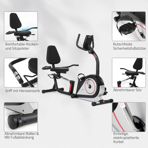 Details: ISE Liegeergometer 2-In-1, Liege-ergometer mit Magnetbremse, 8 Stufen Widerstand&Multifunktions-LCD-Display, Impulssensoren, einstellbarer Sitz Ergometer