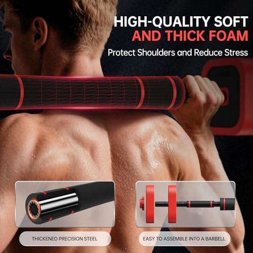 【Sicherheitsdesign】 Entworfen nach Sicherheitsstandards, verfügt das JOROTO Hantelset über extra-dicke Verriegelungsknöpfe mit verbreiterten Innengewinden und einen langlebigen Langhantel-Verbinder mit Stahlkern und Schaumstoffpolsterung. Gewährleistet maximale Sicherheit beim intensiven Training und schützt Schultern und Nacken – ideal für Männer und Frauen im Heimtraining.