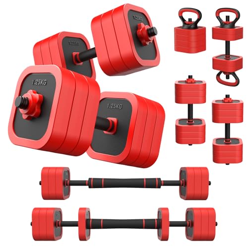 JOROTO 10KG/30KG verstellbares Hantelset 4-in-1-Kurzhanteln, Langhantel, Kettlebell & Liegestützgriffe mit Eisensand, rutschfester Griff, platzsparend für Heimfitness, Krafttraining & Fitness