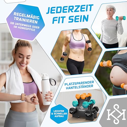 KESSERยฎ Hantel-Set, 3 Paar, 1kg – 5kg, 12kg oder 18kg kurzhanteln mit Stรคnder Aufbewahrung, Fitnessstudio, Krafttraining, Hantelset rutschfeste Neopren, Mit รbungsheft, 2x Fitnessbรคnder