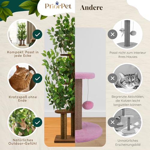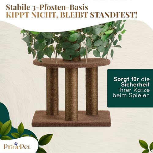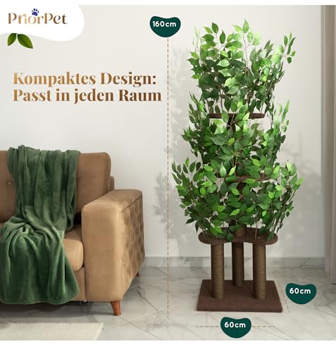 Kratzbaum mit Blättern – Stabiler & Platzsparender Katzenbaum – 4 kratzbare Ebenen & 3 Kratzsäulen – Klettern, Verstecken, Schlafen – Einfache Montage – Haustiersicherer & Langlebiger Cat Tree Natur