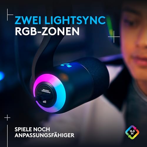 Zwei RGB-Zonen: Steuere mit LIGHTSYNC die beiden separaten RGB-Beleuchtungszonen am Mikrofon und synchronisiere sie in G HUB mit anderer Logitech G Gaming-Ausrüstung für vollständig immersives Spiel