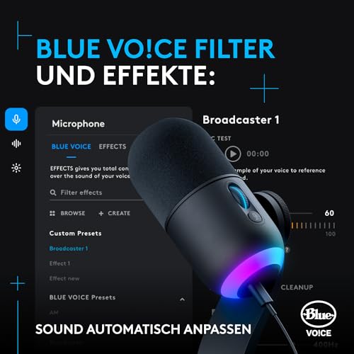 Blue VO!CE Filter und Effekte: Aktiviere die intelligente Audiosperre und andere Studio-Tools; nutze Blue VO!CE Filter, Effekte und Samples zur Unterhaltung und Interaktion mit Ihrem Stream-Publikum