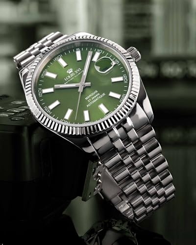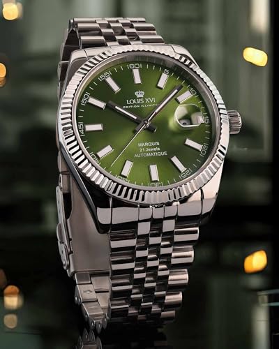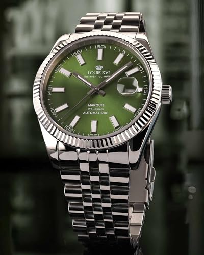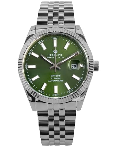 LOUIS XVI Marquis Automatik 3025 – Ø 41.5 mm – Herren Uhr – Wasserdicht – Armband Silber – Zifferblatt Grün – Automatikuhr