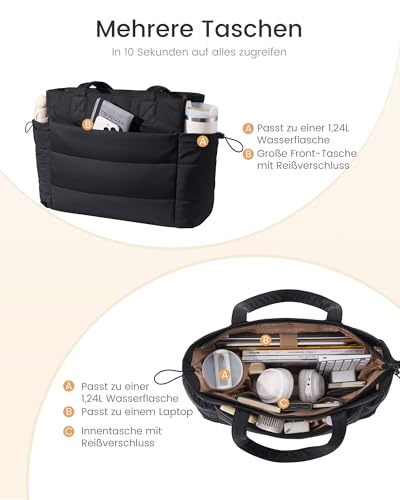 Details: LOVEVOOK Shopper Tasche Damen Groß, Puffer Handtasche Tote Bag Arbeitstasche 15,6 Zoll Laptoptasche Leicht Lehrertasche, Schultasche Handbags for Women für Uni Business Schule Büro, Schwarz