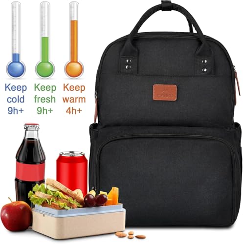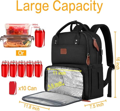 MATEIN Lunch Rucksack, Laptop Rucksack Herren 15,6 Zoll mit Isoliertes Kühlfach, Kühlrucksack mit USB Ladeanschluss, Wasserdicht Kühltasche Lunch Tasche Damen Reisen Arbeit, Schwarz