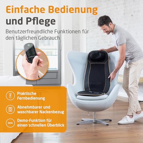 Medisana MCN Shiatsu Massagesitzauflage, Rückenmassage und Nackenmassage, Massagematte mit Wärmefunktion, 3 Intensitäten, Rückenmassagegerät mit Rotlichtfunktion, für zu Hause & das Büro