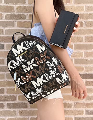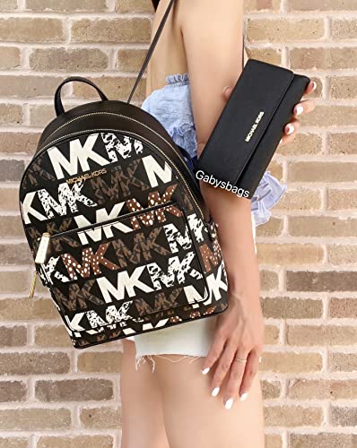 Michael Kors Adina Medium Rucksack Signature Logo Tasche mit Animal Print Bundled with Michael Kors Jet Set Travel Large Trifold Wallet Black Saffiano Leather