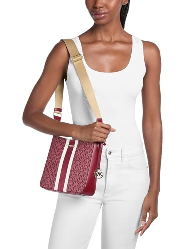 Details: Michael Kors Jet Set Small Signature Logo Stripe Crossbody Bag Cherry