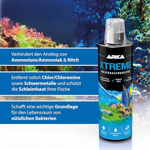 Details: Nano Aquarium Wasseraufbereiter 118 ml – macht Leitungswasser sofort fischgerecht – entfernt Chlor, Ammoniak & Schwermetalle – schützt Garnelen – ideal bei Neueinrichtung & Wasserwechsel – ARKA Xtreme