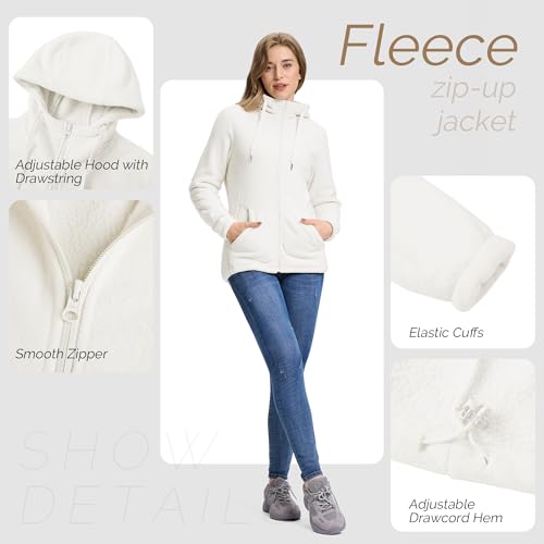 Details: Outdoor Ventures Damen Fleecejacke mit Durchgehendem Reißverschluss Hoodie Frauen Fleece Sweatjacke Warm Kapuzenjacke Outdoor Damenjacke mit 6 Taschen für Wandern und Freizeit