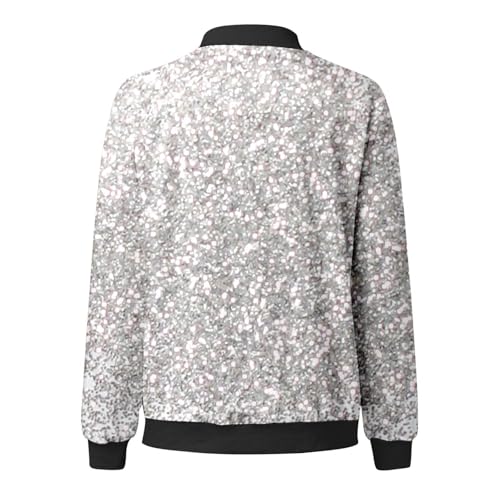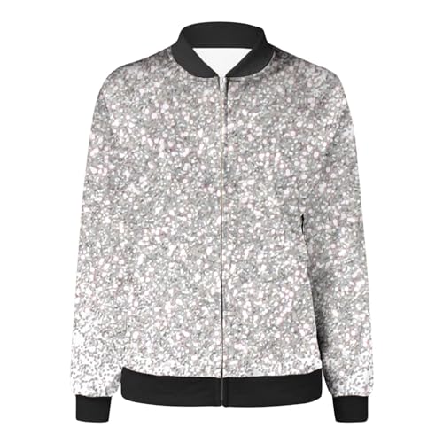 Pailletten Jacke Damen mit Reißverschluss Glitzer Bomberjacke Bolero Elegant Jacken Festliche Disco Kostüm Langarm Casual Pailettenjacke Slim Fit Winter Streetwear Top Glitzertop für Rave Party