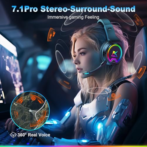 【Immersiver 7.1 Surround Sound】Mit einem 50-mm-Treiber verstärkt dieses drahtlose wireless gaming headset die Soundqualität und das räumliche Bewusstsein. Aktiviere den virtuellen 7.1 Surround Sound, um den dynamischen Bereich zu erweitern – so nimmst Du Richtungsgeräusche, Schritte und jedes Detail in Spielen klar wahr für ein immersiveres Spielerlebnis. Der 3D-Stereosound lässt Dich fühlen, als wärst Du mitten im Geschehen.