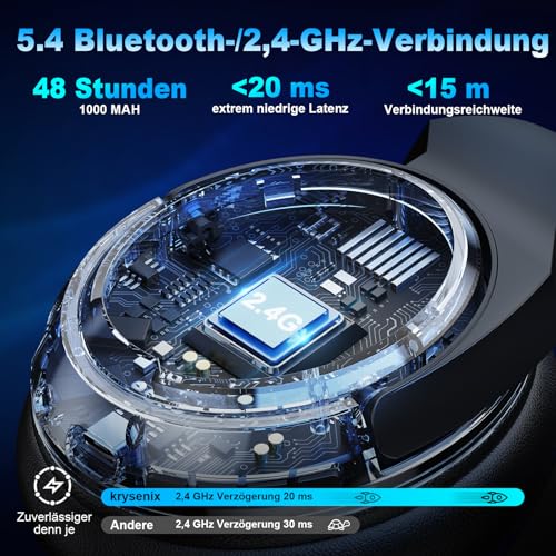 【Duale Verbindungsmodi & Ultra-Niedrige Latenz】Unser kabellose Gaming Headset kombiniert industryführende 2.4GHz-Technologie und Bluetooth 5.4 für ultra-niedrige Audio-Latenz (