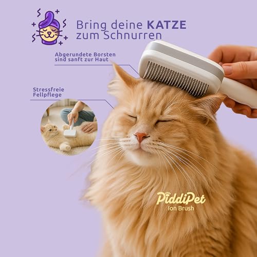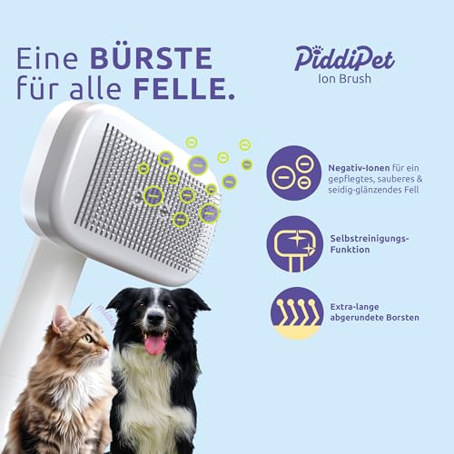PiddiPet IonBrush – Ionen Tierhaarbürste elektrisch – Fellbürste gegen Verfilzungen & Unterwolle für Hunde & Katzen – reduziert statische Aufladung & lose Haare – sanft, selbstreinigend, hautschonend