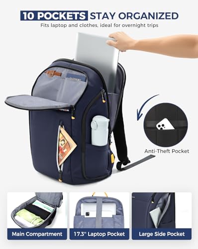 Details: Ponhog Rucksack Herren, Groß Laptop Rucksack 17 Zoll, Reiserucksack mit Anti Diebstahl Computerfach, Laptoptasche für Reise Business Arbeit Weekender, Marineblau