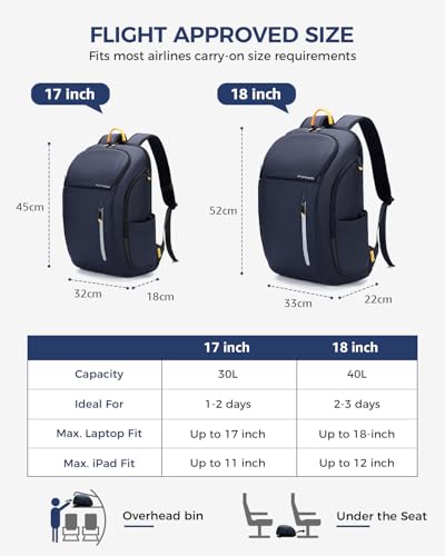 FLUGTAUGLICH & SICHER: Unser Handgepäck Rucksack (30L, 55x35x20 cm) erfüllt die Größenanforderungen Mehrheit Fluggesellschaften und öffnet sich bis 180° für schnelle Sicherheitskontrollen. Anti-Diebstahl-Tasche auf der Rückseite des Rucksacks, um Ihre Wertsachen sicher aufzubewahren