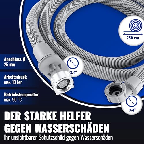Details: Poppstar 2,5m Waschmaschinenschlauch (Aquastop Schlauch für Waschmaschine, Spülmaschine), 3/4 Zoll Anschluss