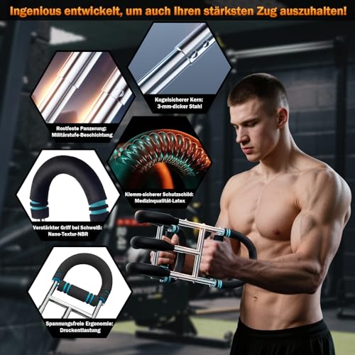 【120/150/180LB wissenschaftliche Progression】: Drei stufenlos einstellbare Widerstände passen sich jedem Level an – ideal als Brusttrainer Männer, Unterarmtrainer, bizeps trainingsgerät oder Oberschenkeltrainer etc. Von Rehabilitation über Fettverbrennung bis Muskelaufbau.