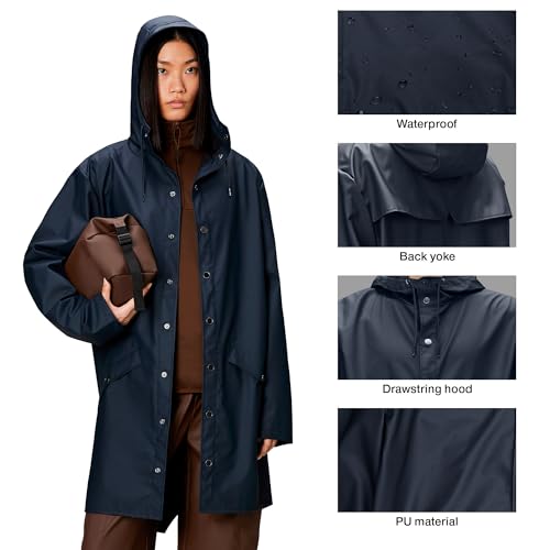 Details: RAINS Unisex Lange Jacke Wasserdichte Jacke