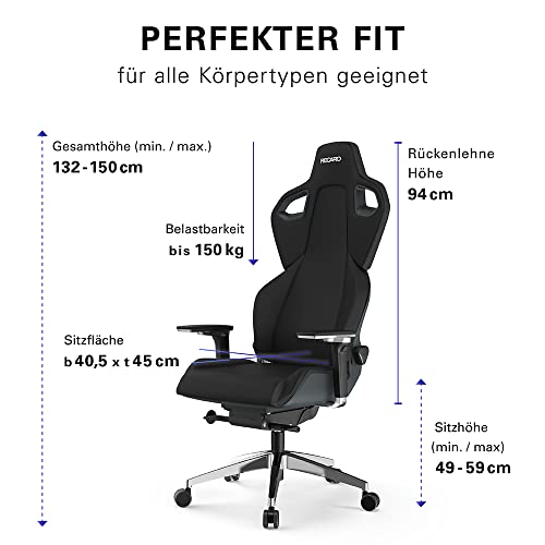 Details: RECARO Exo FX High End Gaming Stuhl & Bürostuhl Ergonomisch [TÜV-Zertifiziert] | Made in Germany | Lordosenstütze & Anti-Submarining Hügel | Stufenlose Einstellung über Handräder, Pure Black