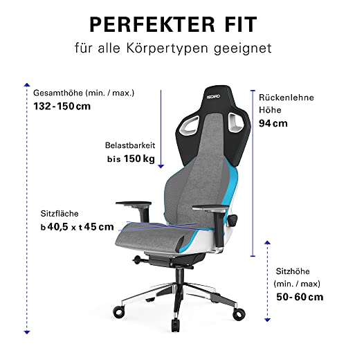 RECARO Exo Platinum Gaming Stuhl & Bürostuhl Ergonomisch [TÜV-Zertifiziert] | Made in Germany | Lordosenstütze, Aluminium-Rahmen, Anti Submarining, Handräder für stufenlose Einstellung, Sky