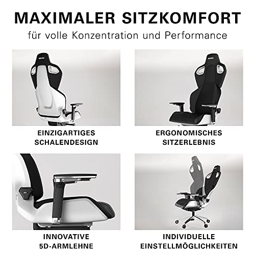 Für höchste Ansprüche: In den RECARO Exo sind jahrzehntelange Erfahrungen mit Sitzen aus der Luftfahrt und dem Motorsport eingeflossen. Selbst bei nach vorne geneigter Körperhaltung bietet der als Gaming- und Office Chair gleichermaßen geeignete Exo sitzergonomische Unterstützung im Rückenbereich. Sitzschale, Handräder, eine integrierte Lordosenstütze und hochwertiger Polsterschaum aus dem Motorsport runden das Gesamtpaket ab