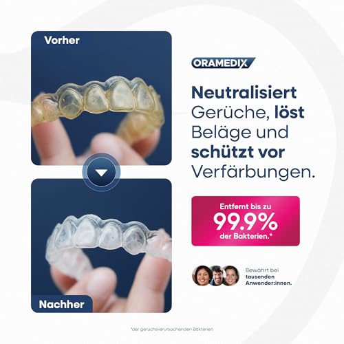 ✅ ZUVERLÄSSIG GEGEN 99,9 % DER BAKTERIEN – Die kraftvolle Formel wirkt gezielt gegen geruchsverursachende Bakterien und sorgt für frischere Atemluft – ideal für tägliche Anwender von Zahnschienen aller Art. *Entfernt bis zu 99,9 % der Mundgeruch verursachenden Bakterien.