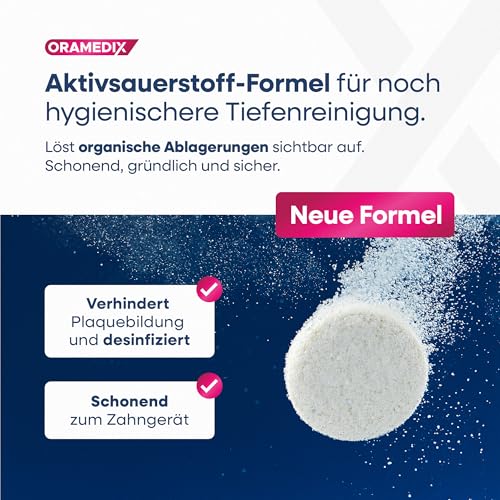 ✅ SCHNELLE REINIGUNG IN NUR 15 MINUTEN – Einfach eine Tablette in ein Glas Wasser geben und auflösen. Danach Zahngerät in der Lösung für 10-15 min einlegen. Anschließend mit Wasser abspülen. Perfekt für die schnelle Morgen- oder Abendroutine.