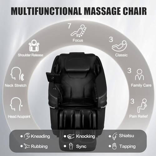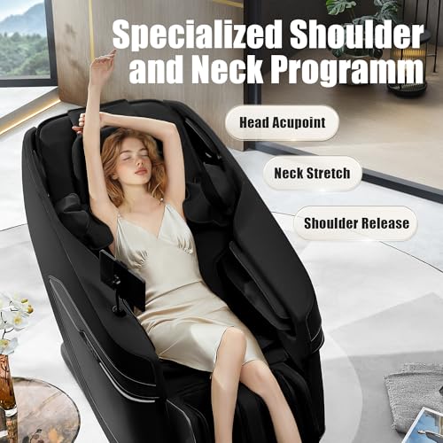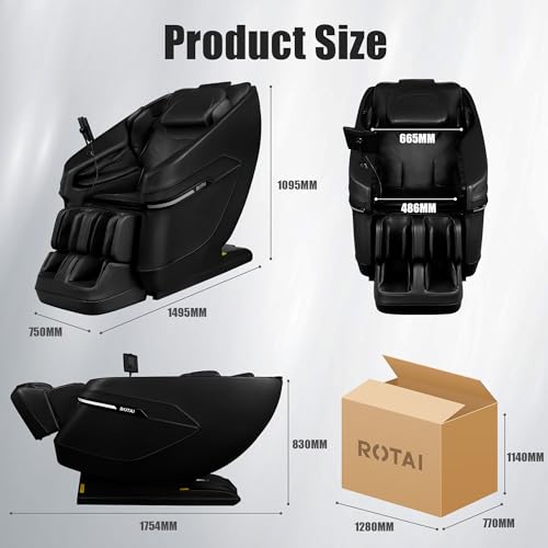 ROTAI Massagesessel 3D mit Zero-Gravity & Lendenwärme, Fußrollen & Bluetooth – 19 Auto-Programme, 6 Modi, 5 Geschwindigkeiten für Schulter- & Nackenentspannung