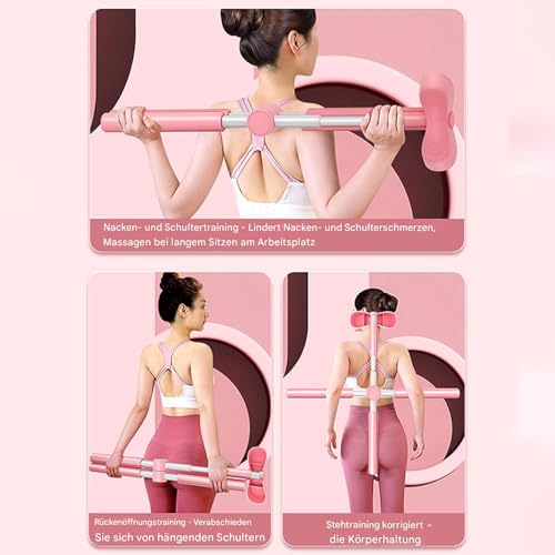 Körperausrichtung unterstützen: Der Yoga-Kreuzstab ist designed, um Schultern zu öffnen und den Rücken zu strecken, fördert die Brusterweiterung und hilft, den Oberkörper während Yoga-Posen oder Korrekturübungen zu stärken. Dies sorgt für eine bessere Ausrichtung und mehr Komfort, verbessert die Haltung und Beweglichkeit durch gezielte ung und Kräftigung mit diesem hilfreichen Trainingsgerät für tägliches Wohlbefinden.