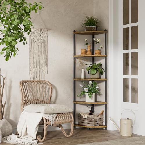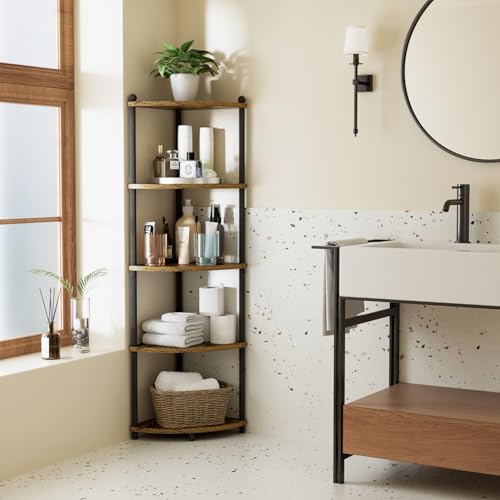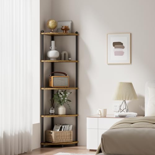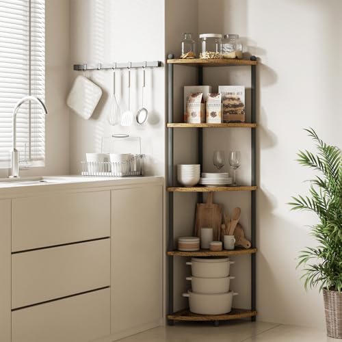 Ruichang Eckregal stehend mit 5 Ebenen, bücherregal, Standregal, Aufbewahrungsregal, Lagerregal für Küche, Bad, Wohnzimmer, Büro, 143.5 x 29 x 29 cm, Schwarz