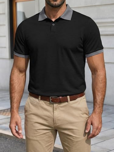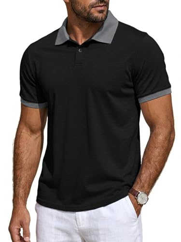 Runcati Herren Poloshirt Sommer Kurzarm Golf Shirt Männer Regular Fit Kontrast T-Shirt Basic Casual Knopfleiste Freizeit Polohemd