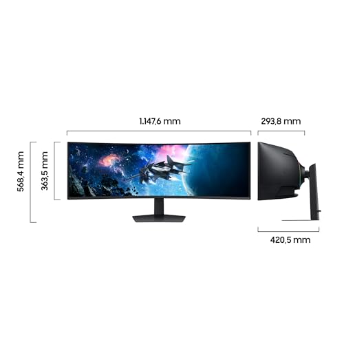 Details: Samsung Odyssey G95C Curved Gaming Monitor, 49 Zoll, VA-Panel, 5.120 x 1.440 Pixel, VESA DisplayHDR 1.000, HDR10+ Gaming, Freesync Premium Pro, Bildwiederholrate 240 Hz, Reaktionszeit 1 ms (G/G)