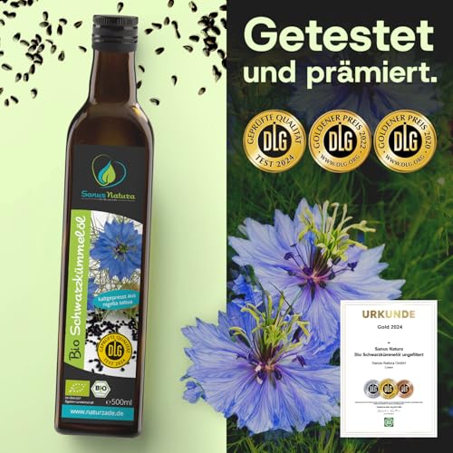 Details: Sanus Natura Bio Schwarzkümmelöl 1000 ml (2x 500ml) ungefiltert kaltgepresst mühlenfrisch direkt vom Hersteller