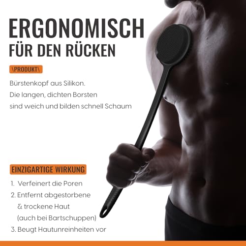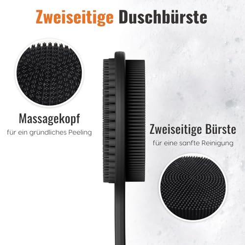 Details: Silikon RüCkenschrubber FüR Die Dusche, Silikon KöRperschrubber Mit Langem Griff, RüCkenschrubber, Abgestorbene Haut entfernen Und Massage KöNnen Mehr Schaum Erzeugen (Black)