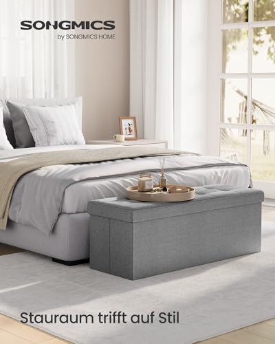 SONGMICS Sitzhocker mit Stauraum, klappbare Sitzbank, 38 x 110 x 38 cm Fußbank, Aufbewahrungsbox, bis 300 kg belastbar, für Wohnzimmer Schlafzimmer Flur, aschgrau LSF77G