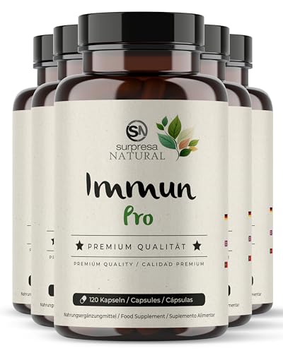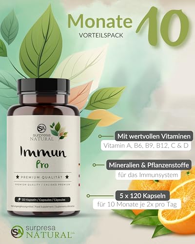 Surpresa Natural 12 in 1 Immun Pro I 5x 120 Kapseln I Multivitamin Booster hochdosiert I Vitamin A, B6, B9, B12, C, D, Eisen, Kupfer, Selen, L-Histidin, Astragalus & Zink I vegane Multivitamin Kapseln