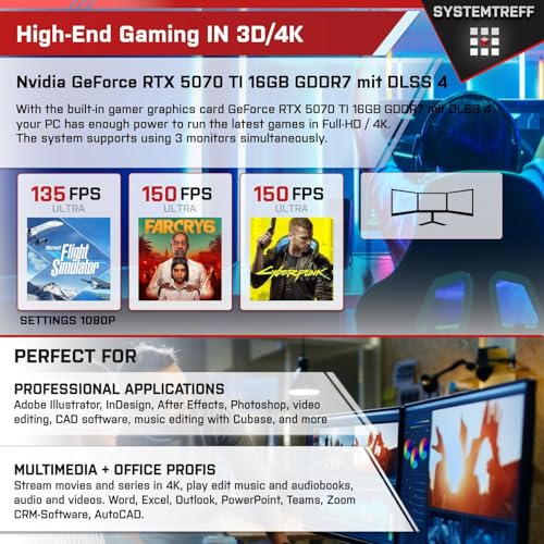 Details: SYSTEMTREFF High-End Gaming PC Intel Core i5-14600KF 14×5.3GHz | Nvidia RTX 5070 TI 16GB | 1TB M.2 NVMe | 32GB DDR5 RAM | Desktop Computer Rechner für Gamer, Zocker & Streamer