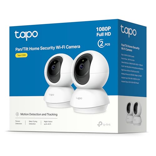 Tapo TP-Link C200P2 360° Überwachungskamera für den Innenbereich, 1080P, Nachtsicht, Bewegungserkennung, Zwei-Wege-Audio, kompatibel mit Alexa&Google Assistant, für Babys/Haustiere, 2 stück C200