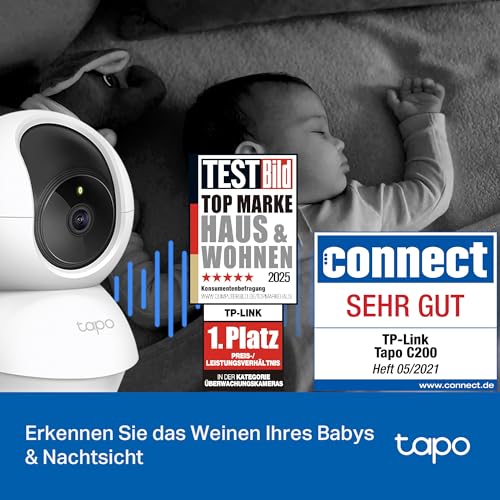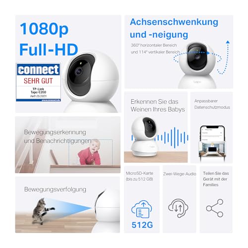 Details: Tapo TP-Link C200P2 360° Überwachungskamera für den Innenbereich, 1080P, Nachtsicht, Bewegungserkennung, Zwei-Wege-Audio, kompatibel mit Alexa&Google Assistant, für Babys/Haustiere, 2 stück C200