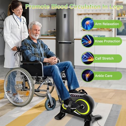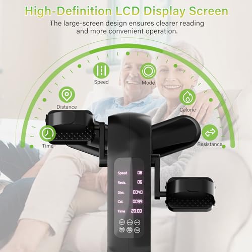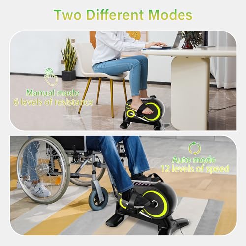TODO Elektrisch Pedaltrainer für senioren mit 12 Geschwindigkeiten, Mini Heimtrainer mit Automatik-Manuell-Modus, 6 Widerstandsstufen, Beintrainer im Sitzen, LCD-Display, Fernbedienung und Fußgurt