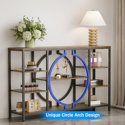 Details: Tohomeor 120cm Industrielle Konsoletisch für Diele – Rustikale Sofatisch für hinter die Couch 4-stufiger Regal-Eingangstisch mit Stauraum für Flur, Eingangsbereich, Wohnzimmer (Braun)