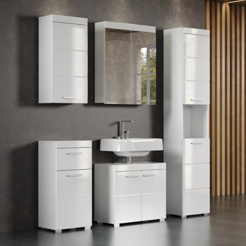 trendteam smart living – Amanda – Waschbeckenunterschrank – Weiß/Weiß Hochglanz – 1 Einlegeboden – (BxHxT) 60 x 56 x 34 cm – Kratzfest