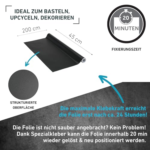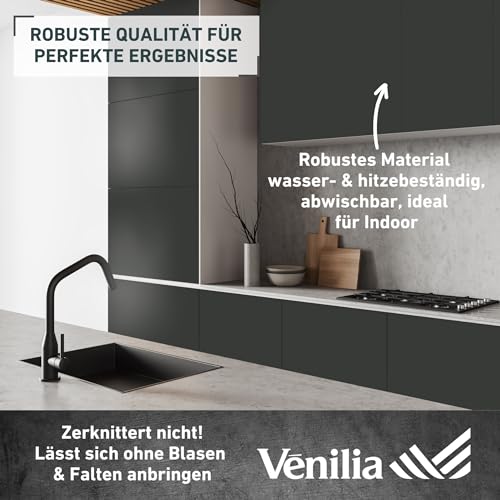 Details: Venilia Möbelfolie selbstklebend, Uni Matt, Schwarz, 45 cm x 2 m, PVC, langlebig, einfache Entfernung, hitzebeständig, reißfest, 53290