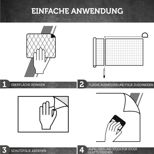 PFLEGELEICHT und LANGLEBIG: Unsere selbstklebenden Folien sind pflegeleicht und lassen sich einfach mit einem feuchten Tuch reinigen Unsere hochwertigen Klebefolien mit einer Stärke von 160μ sind langlebig und halten jahrelang, ohne zu verblassen oder abzublättern