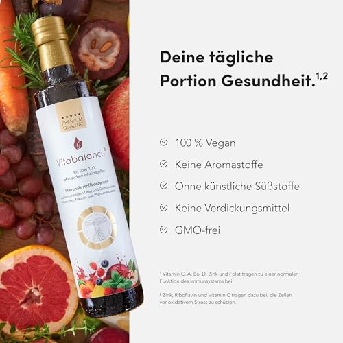 Details: Vitabalance® Mikronährstoffkonzentrat 500 ml – 128 Zutaten inkl. fermentiertem Obst und Gemüse – für die tägliche Nährstoffversorgung | Vegan | 1-Monats-Vorrat